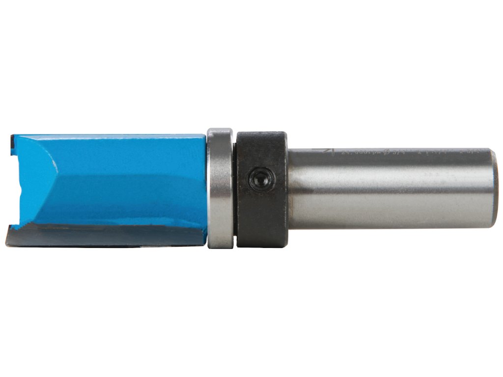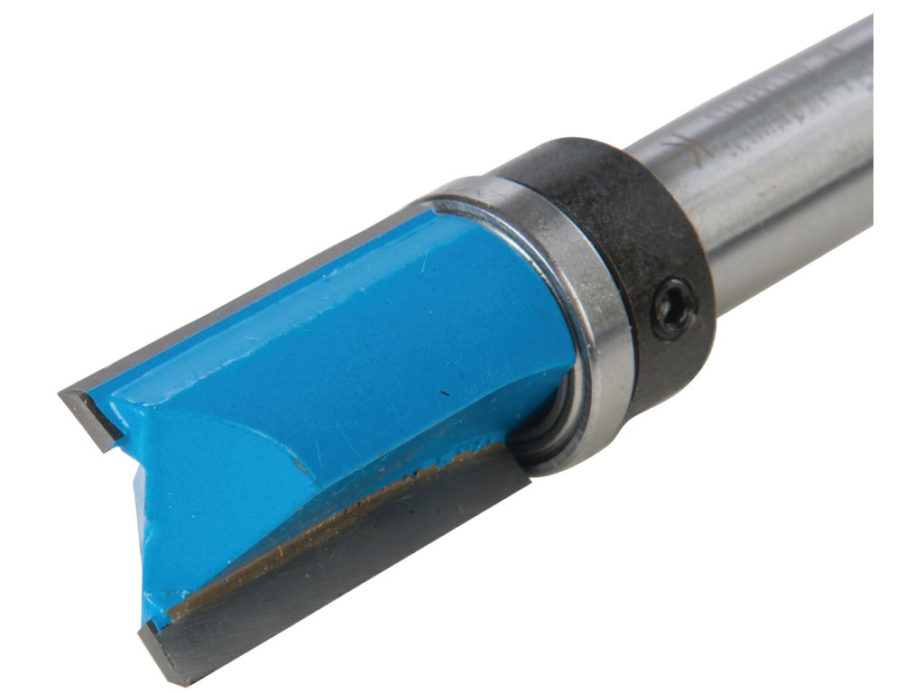 Dva rezna ruba TCT karbida osiguravaju visok vijek trajanja alata i visokokvalitetnu obrađenu površinu. Čvrsta, kaljena čelična koljenica, maksimalna brzina 24.000 okretaja u minuti. Pogodno za glodanje šablona (nije uključeno).