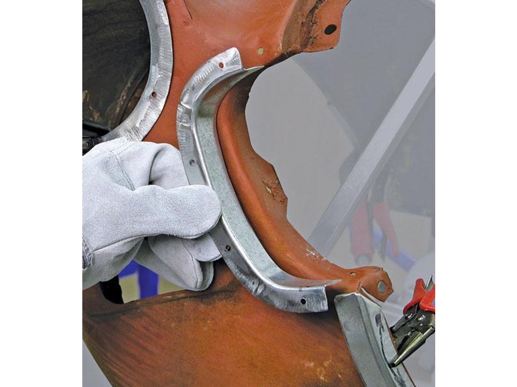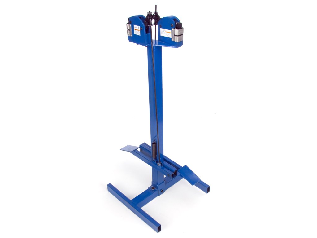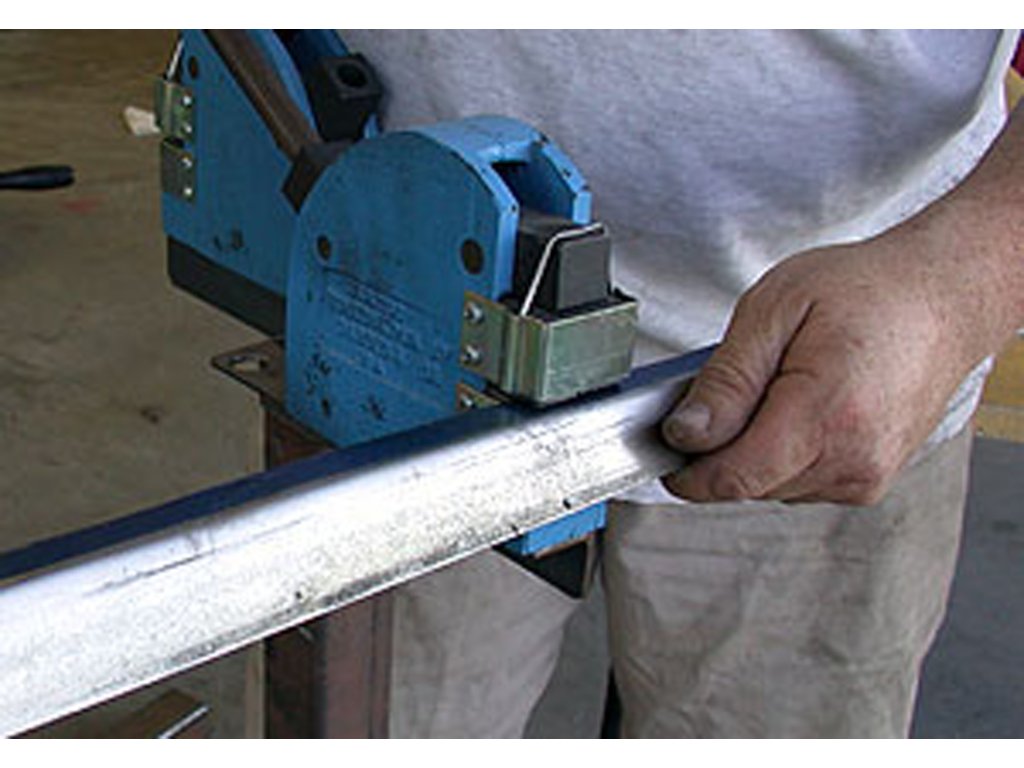 Limeni jig za proizvodnju unutarnjih i vanjskih rubova lima. 2 seta alata za širenje i skupljanje lima omogućuju vam stvaranje zakrivljenih prirubnica profila "L" za prirubnice i oblikovane profile u popravcima karoserije automobila. Opremljen je postoljem i kontrolom stopala. radijus 76 mm, visina stezne glave 25,4 mm. Pogodno za limove koji tvore do: Al ≤ 1,5 mm; niskougljični čelik ≤ 1,2 mm; nehrđajući čelik ≤ 1 mm.