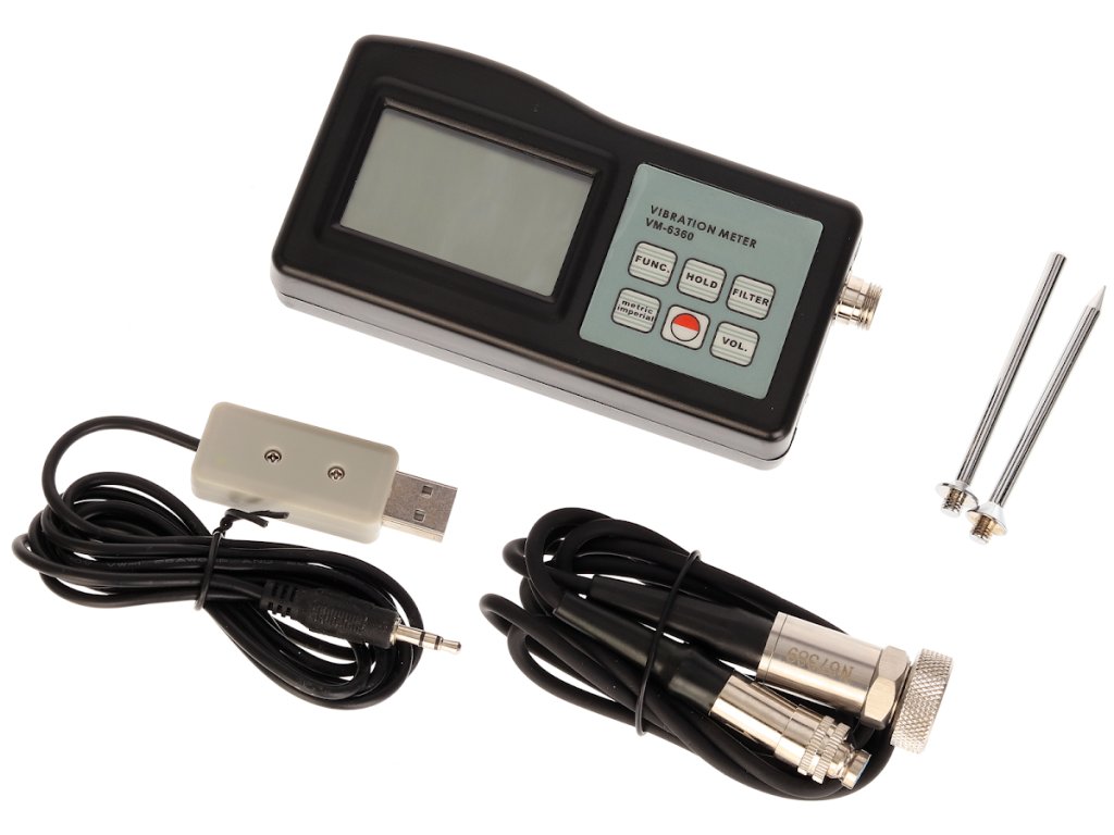 Digitalni instrument za mjerenje vibracija, brzina i ubrzanja. LCD zaslon jasno prikazuje izmjerenu vrijednost. Pretvorba metričkih i imperijalnih mjera. Jednostavan za rukovanje. Isporučuje se u kućištu s jakim mjernim magnetom, sondom (konusnom i sferičnom). Raspon otklona 0,001 – 4 mm (0,01 – 10 kHz), brzina 0,25 – 20 cm/s (0,01 – 10 kHz), ubrzanje 0,1 – 200 m/s² (0,01 – 1 kHz i 0,01 – 10 kHz), napajanje 4 × AAA baterije od 1,5 V, dimenzije 124 × 62 × 30 mm, PC sučelje RS 232C, točnost ± 5%.