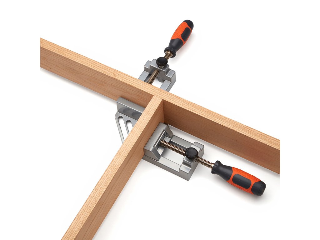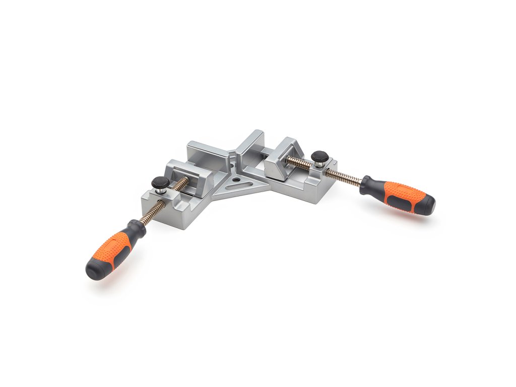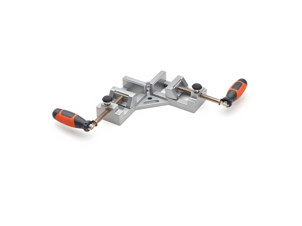Pravi kut je najčešći kut u obradi drva. Ova kutna stezaljka od 90 ° omogućuje vam pričvršćivanje projekata apsolutnom preciznošću, čvrstoćom i brzinom. Idealno za rad na okvirima prozora i vrata ili namještaju. Gumirana pomična ručka može se rotirati kako bi se povećao pritisak stezanja. Čeljust može držati materijal širine do 6,3 cm. Stezaljka je snažan i čvrst lijevani aluminij koji može izdržati grubu radnu uporabu.