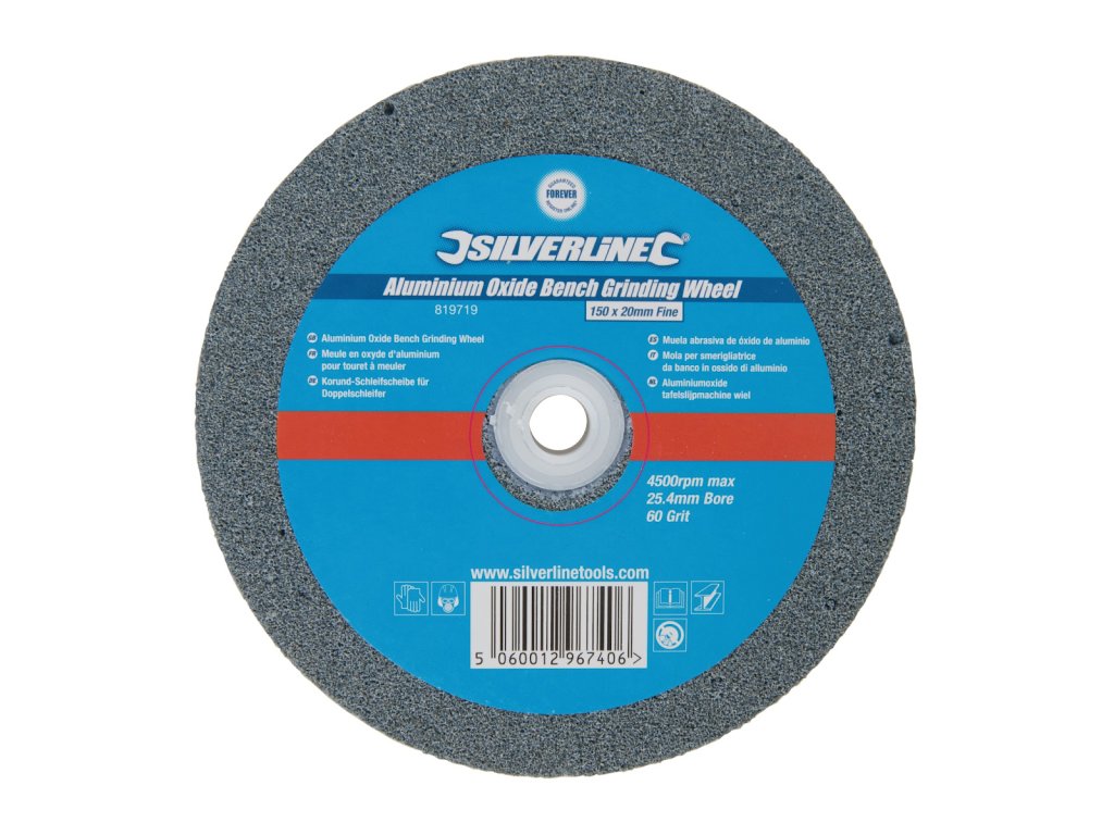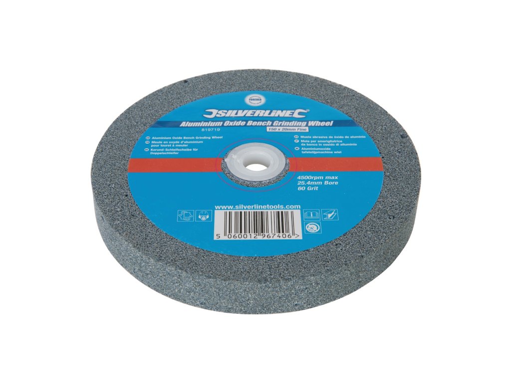 Brušenje aluminijevog oksida za opće brušenje i oštrenje alata. Pogodno za uporabu na željeznim metalima i legurama, 25,4 mm (1") bušotine, s redukcijskim čahurama od 12,7 mm (1/2"), 5/8" (15,88 mm) i 19,05 mm (3/4"). Za uporabu s klupskim brusilicama od 150 mm.