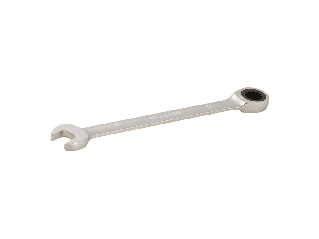 Gašeni i kaljeni kromirani vanadijev ključ s poliranom završnom obradom za otpornost na koroziju. Kombinacija bočnog ključa i ključa s čegrtaljkom od 5°. Omogućuje jednostavan pristup u skučenim prostorima.