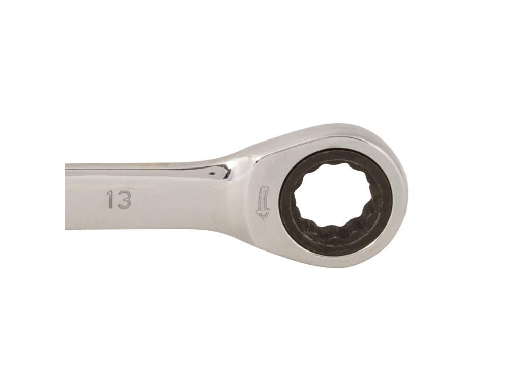 Gašeni i kaljeni kromirani vanadijev ključ s poliranom završnom obradom za otpornost na koroziju. Kombinacija bočnog ključa i ključa s čegrtaljkom od 5°. Omogućuje jednostavan pristup u skučenim prostorima.