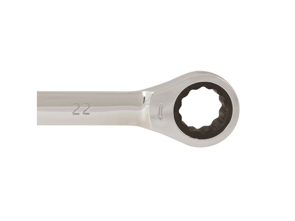Gašeni i kaljeni kromirani vanadijev ključ s poliranom završnom obradom za otpornost na koroziju. Kombinacija bočnog ključa i ključa s čegrtaljkom od 5°. Omogućuje jednostavan pristup u skučenim prostorima.