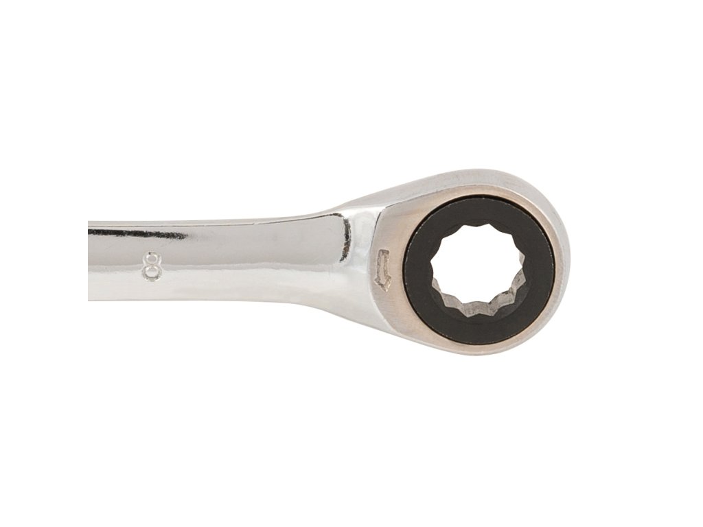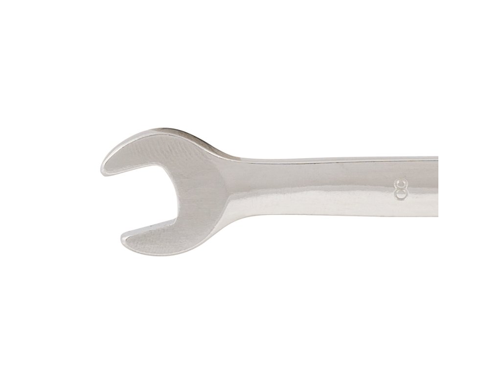 Gašeni i kaljeni kromirani vanadijev ključ s poliranom završnom obradom za otpornost na koroziju. Kombinacija bočnog ključa i ključa s čegrtaljkom od 5°. Omogućuje jednostavan pristup u skučenim prostorima.
