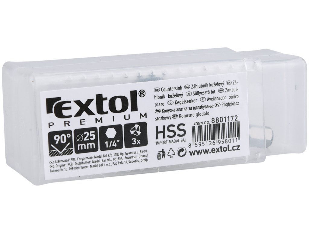 1/2" šesterokutna drška, 3 lopatice, promjera 25 mm. Materijal: HSS čelik velike brzine.