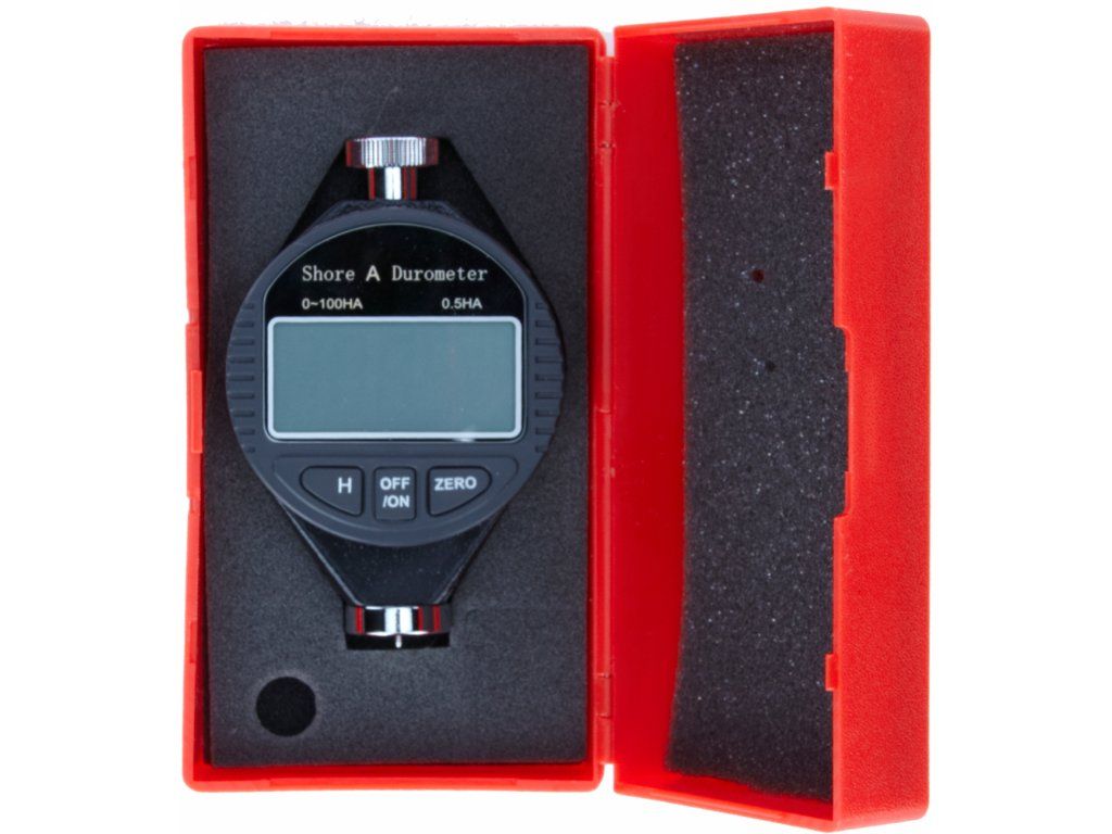 Za mjerenje tvrdoće mekše plastike, gume i sličnih materijala prema dubini prodora vrha metodom Shore A. Raspon 0 – 100 HA; rezolucija 0.5 HA; Mjerni vrh Ø 0,79 mm.