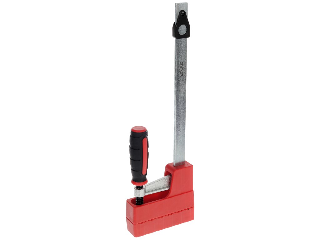 Dvosmjerna stega s robusnom konstrukcijom idealna je za čvrsto i obrnuto stezanje materijala pri stolarskim ili montažnim radovima. Dizajnirana je tako da pruža pouzdano prianjanje zahvaljujući pocinčanoj čeličnoj letvi i ergonomskoj dršci, što olakšava rukovanje i precizno stezanje obradaka različitih veličina.