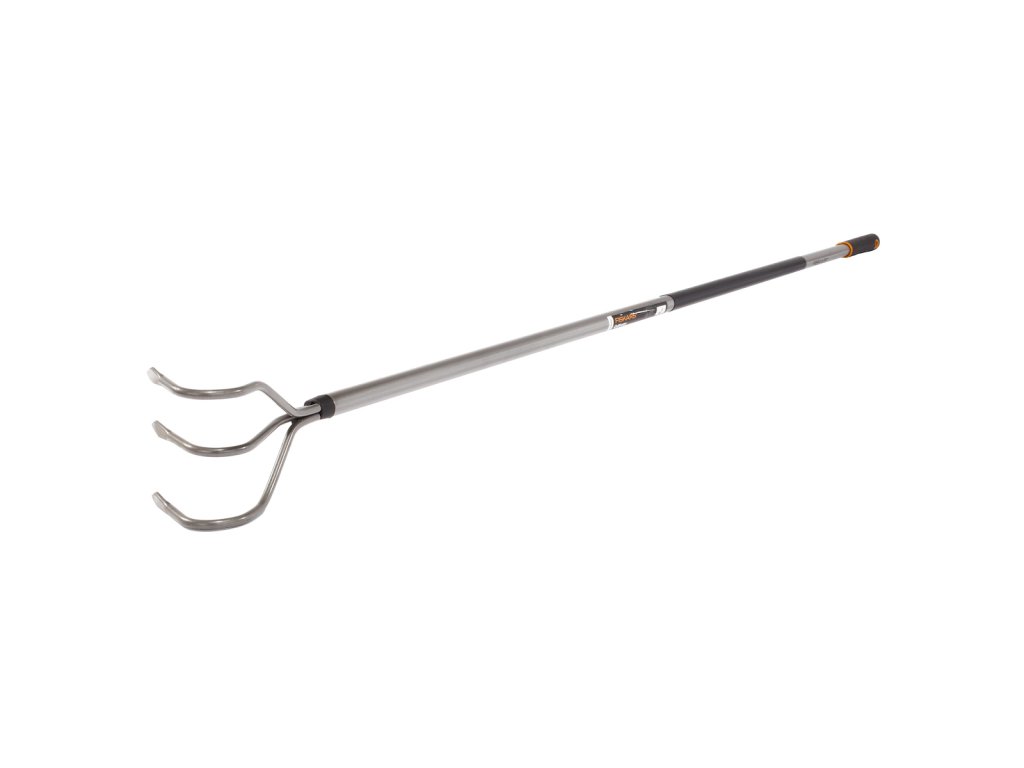 Kultivator za otpuštanje i okretanje tla prije sadnje. Plastični premaz na točki prianjanja za udobno držanje i zaštitu ruku od hladnoće, Praktična ušica na ručki za jednostavno skladištenje. Širina: 125 mm, duljina: 1630 mm, težina: 640 g. Izvorni Fiskars broj: 136510.