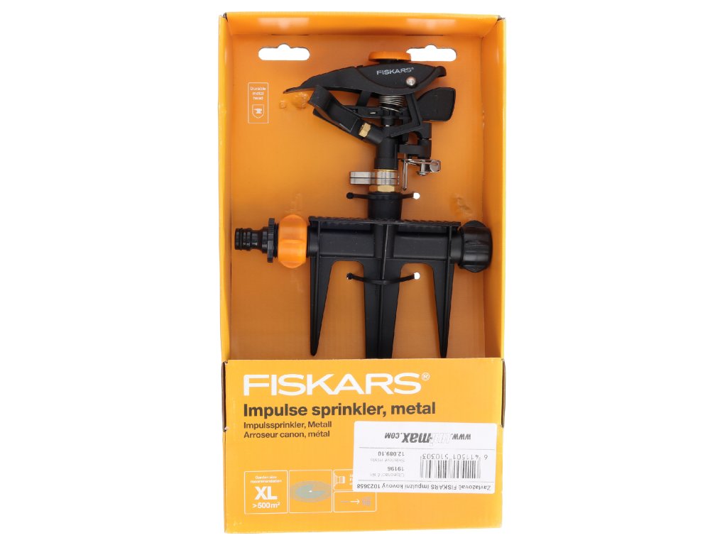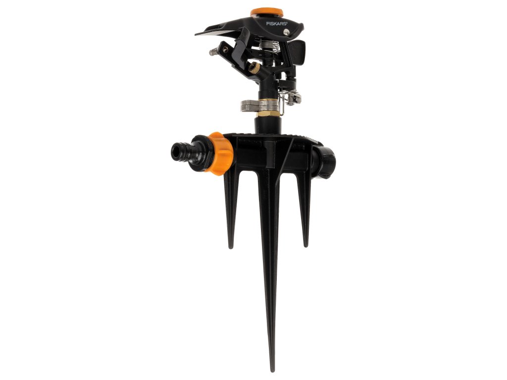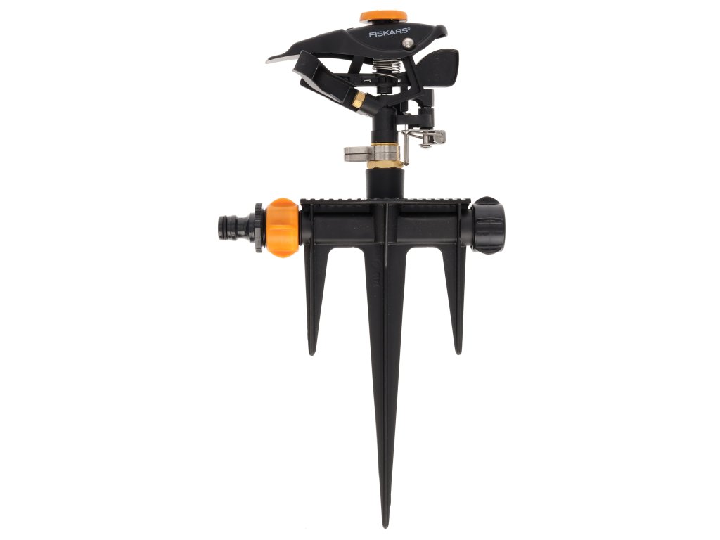 Izdržljiva metalna prskalica uključuje kontrole za jednostavno podešavanje udaljenosti navodnjavanja, vrste spreja i kontrole rotacije za precizno navodnjavanje bilo kojeg područja vašeg vrta. Uzorak spreja može se podesiti od jakog spreja do fine magle. Postavljanje površine za navodnjavanje promjera do 26 m (> 500 m2). Metalna trnovita baza. Univerzalna veza kompatibilna je s drugim markama. Visina: 36 cm, duljina: 19,5 cm, širina: 6,6 cm. Težina: 0,47 kg.