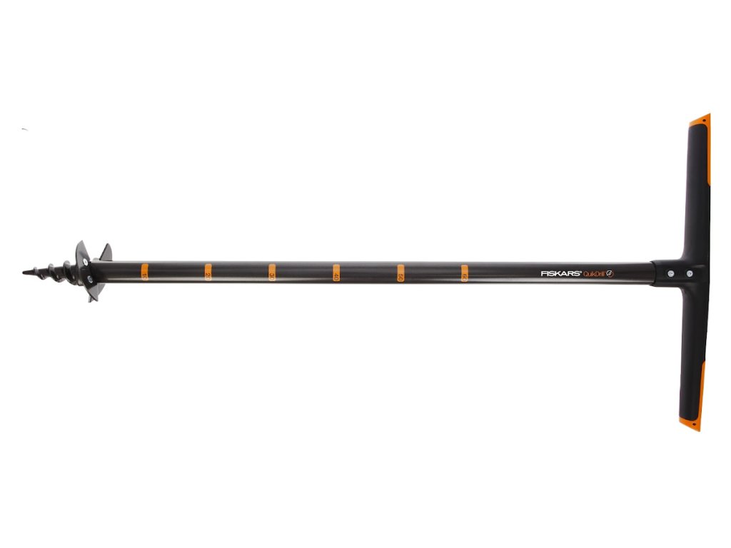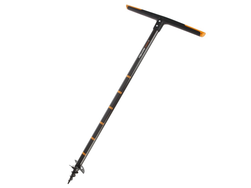 Bušilica ima dvije optimalno nagnute oštrice od bor čelika montirane oko oštrog vrha. Zahvaljujući ovom dizajnu, stoga je moguće prodrijeti u još tvrđa tla s manje otpora, tako da nema stiskanja tla. Namijenjen je sadnji lukovica, prozračivanju i gnojidbi tla i bušenju rupa za manje klinove. Ručka je izrađena od čelika, vrlo izdržljiva. Promjer oštrice: 10 cm. Izvorni Fiskars broj: 134710. Oznaka: (S)