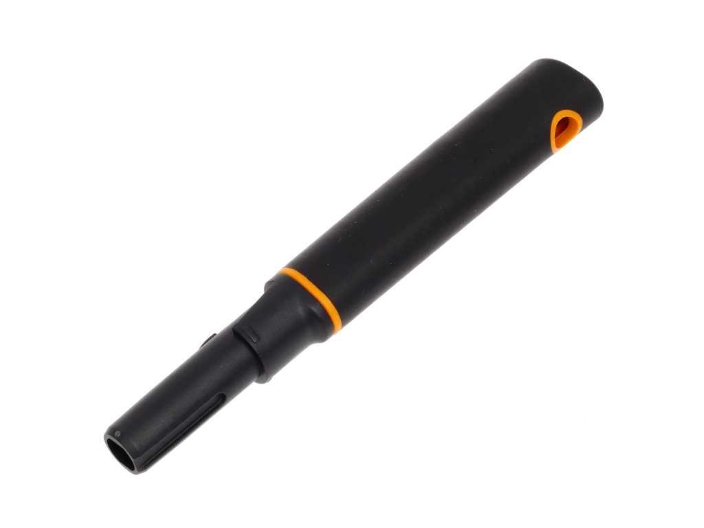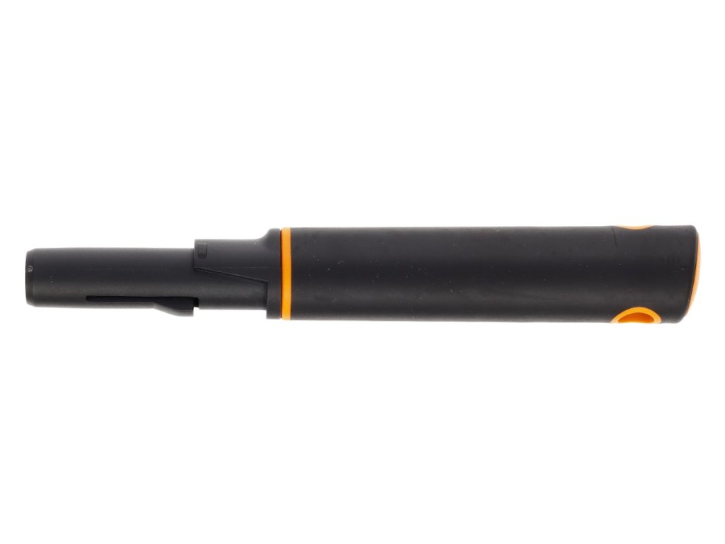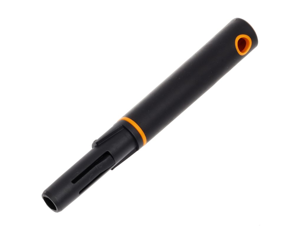 Ručka grablje izrađena od kaljenog aluminija obložena je ugodnom mekom plastikom. Ima patentirani mehanizam za brzo pričvršćivanje priključaka. Sustav QuikFit omogućuje kombiniranje različitih vrtnih alata s jednom ručkom. Ručka ima viseću petlju za jednostavno skladištenje. Širina: 32 mm, duljina: 234 mm, težina: 95 g. Izvorni Fiskars broj: 136012. Oznaka: (S)