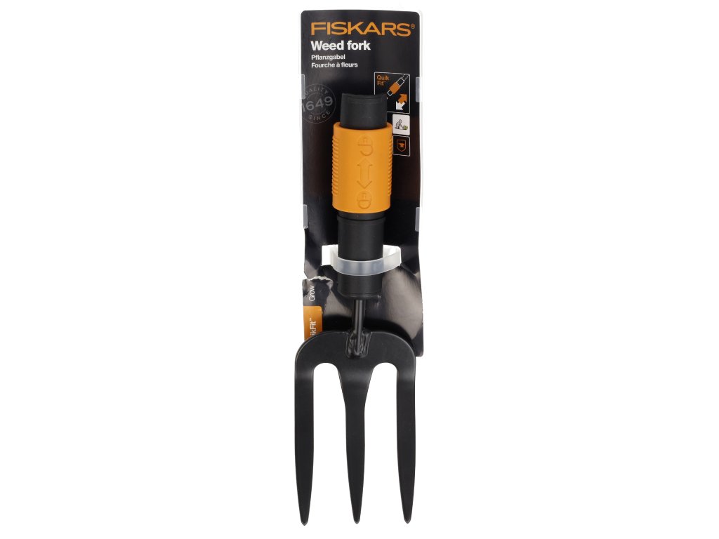 Ravna vilica pogodna je za presađivanje, uzgoj i uklanjanje korova. Radni dio izrađen je od borovog čelika. Sustav QuikFit omogućuje kombiniranje različitih vrtnih alata s jednom ručkom. Preporučena ručka: S i M. Širina: 77 mm, duljina: 273 mm, težina: 215 g. Izvorni Fiskars broj: 137552. Izvorni FIS broj 1000729.