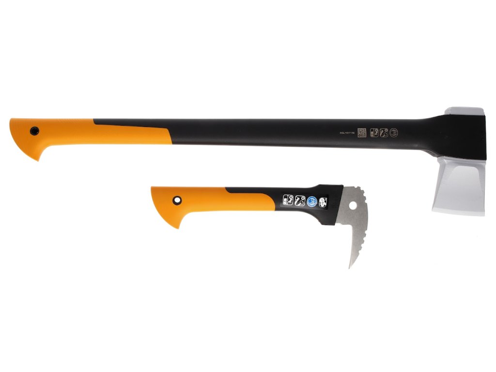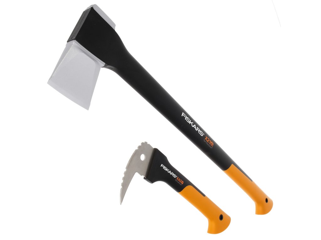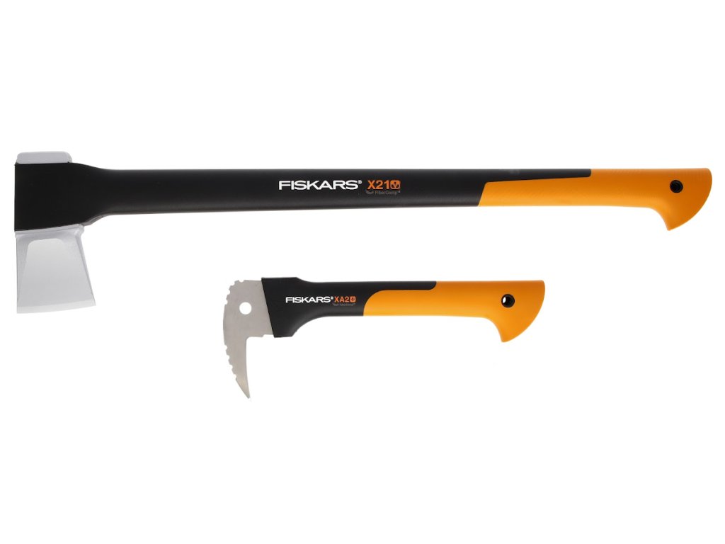 Set se sastoji od X21 sjekire za cijepanje i XA2 sapine. Sjekira za cijepanje pogodna je za cijepanje srednjih trupaca promjera 20 - 30 cm. Ima savršeno uravnoteženu osovinu za sigurnije držanje, povećanu brzinu zamaha i apsorpciju udara. Zakrivljeni kraj ručke sprječava klizanje sjekire iz ruke. Dolazi s plastičnim kućištem za jednostavno i sigurno nošenje i skladištenje. Širina: 208 mm, duljina: 760 mm, visina: 38 mm. Težina: 1740 g. Sapina je pogodna za podizanje, nošenje i okretanje većih trupaca, što olakšava slaganje drva. Ručka je lagana i izdržljiva, čelična oštrica ima nazubljeni rub kako bi se osiguralo čvrsto prianjanje na drvo. Širina: 160 mm, duljina: 348 mm. Težina: 310 g.