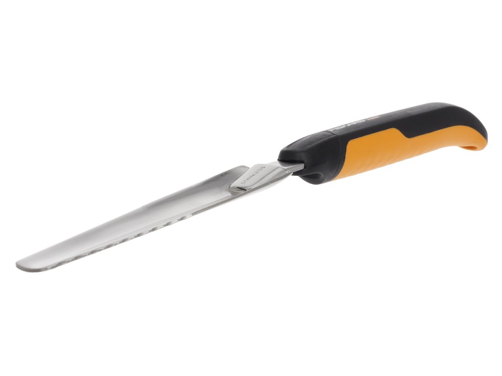 Učinkovit alat za ubod ruku pogodan je za uklanjanje korova s dugim korijenima uz minimalno prianjanje tla. Radni dio izrađen je od izdržljivog nehrđajućeg čelika. Ergonomska ručka izrađena je od kaljenog aluminija s udobnom površinom mekog prianjanja i dulja je kako bi se osigurala savršena ravnoteža alata. Širina: 43 mm, duljina: 396 mm, visina: 36 mm, težina: 260 g.