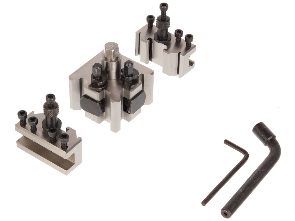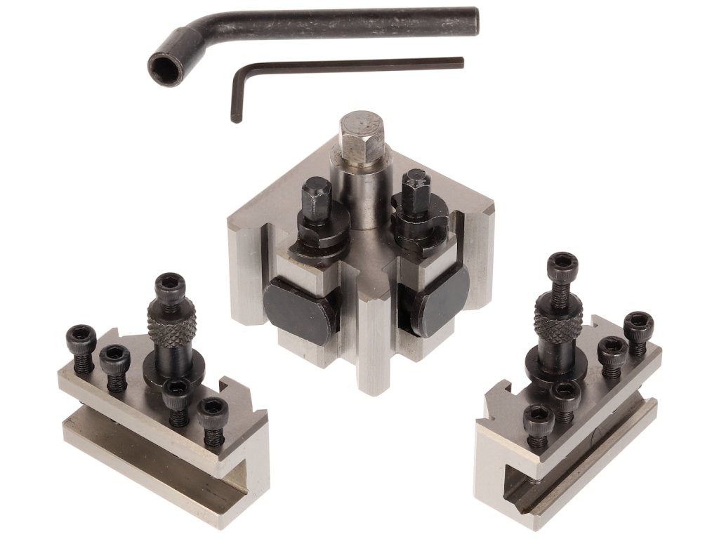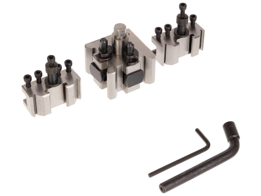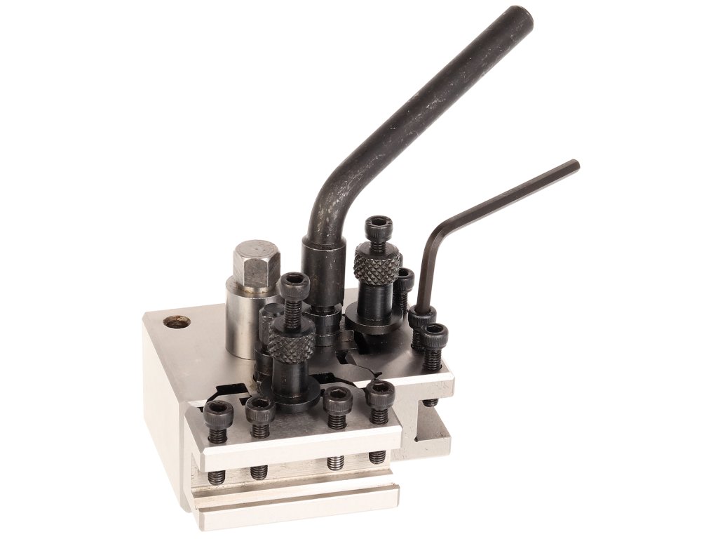 Glava za brzo otpuštanje dizajnirana je za pričvršćivanje na nosač alata tokarilice. Pojedinačni adapteri su pričvršćeni na glavu ekscentričnom bravom u dva žljebova. Osim glave, set uključuje 2 adaptera za različite noževe i namjene. Svaki adapter ima zasebno graničnik podesiv po visini za optimalno podešavanje alata. To omogućuje smanjenje vremena potrebnog za promjenu i podešavanje alata što je više moguće.
