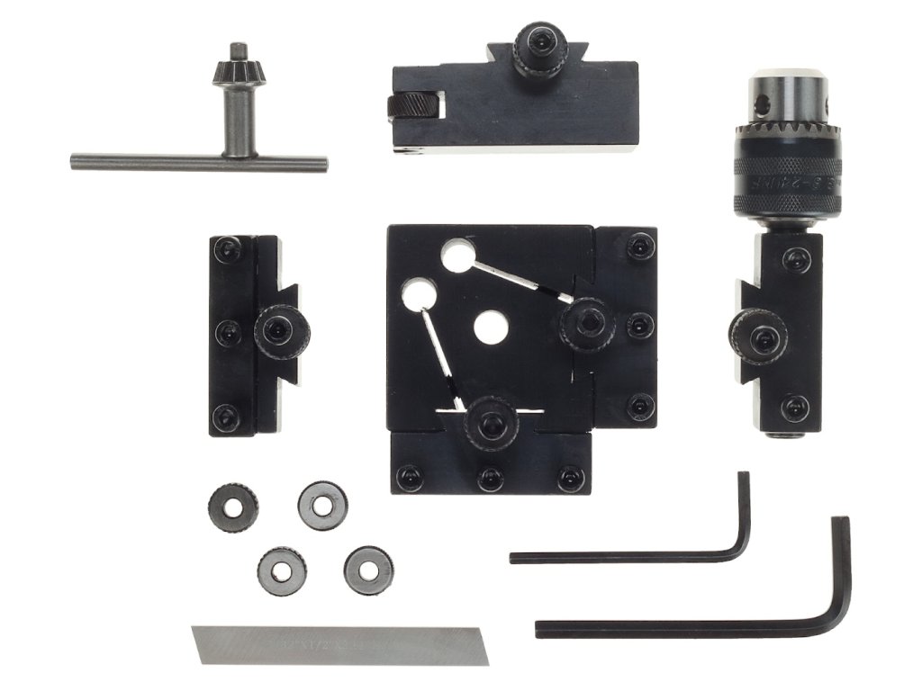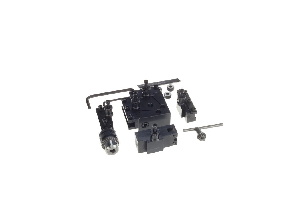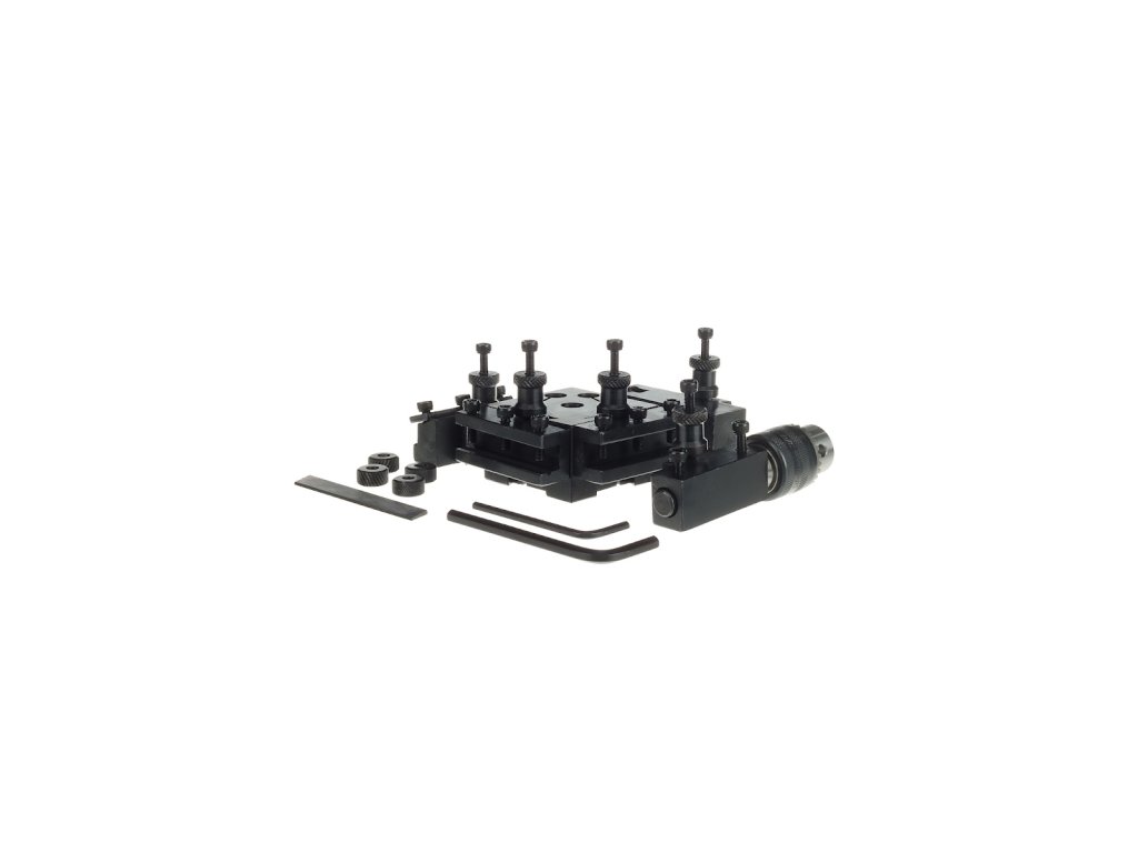 Glava za brzo otpuštanje dizajnirana je za pričvršćivanje na nosač noža tokarilice. Pojedinačni adapteri su pričvršćeni na glavu ekscentričnom bravom u jednom utoru za dovetail. Set uključuje adaptere: 2 za kvadratni nož, 1 za steznu glavu ili okrugli nož, 1 kom za razdjelni nož i 1 adapter s kotačima za pletenje. Svaki adapter ima zasebno graničnik podesiv po visini za optimalno podešavanje alata. To omogućuje smanjenje vremena potrebnog za promjenu i podešavanje alata što je više moguće.