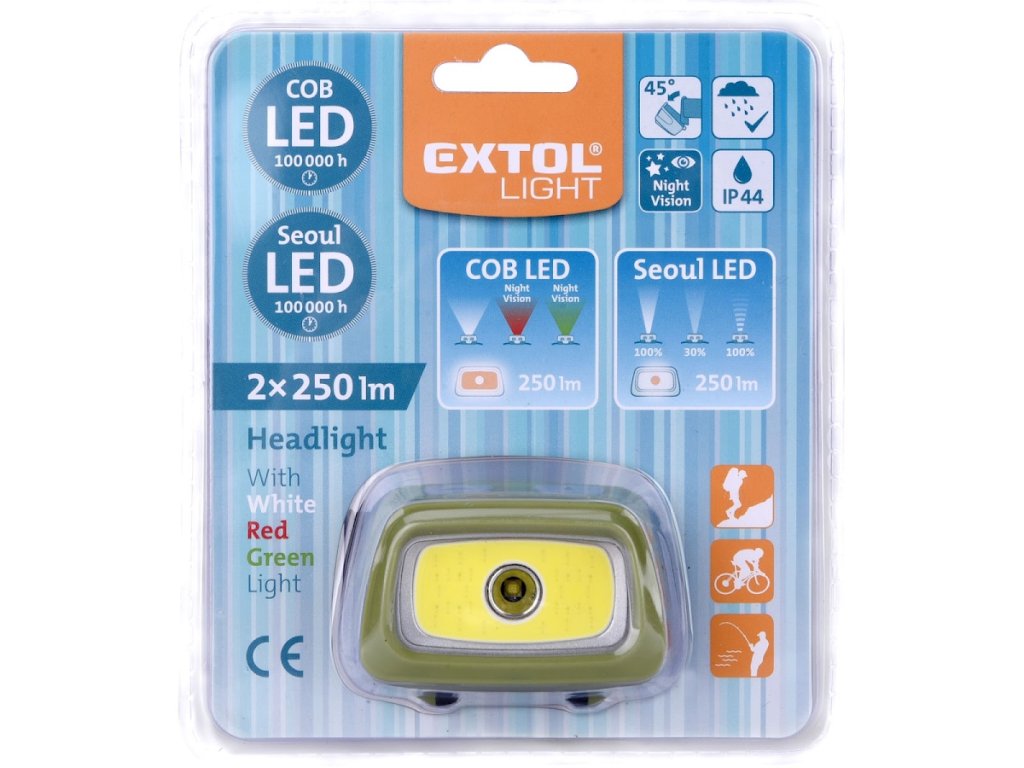 Glavno svjetlo 250 lm+250 lm, 250 lm Seoul LED, 250 lm COB LED, crveno/zeleno svjetlo noćnog vida