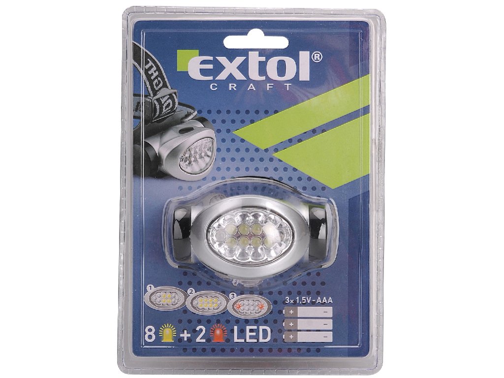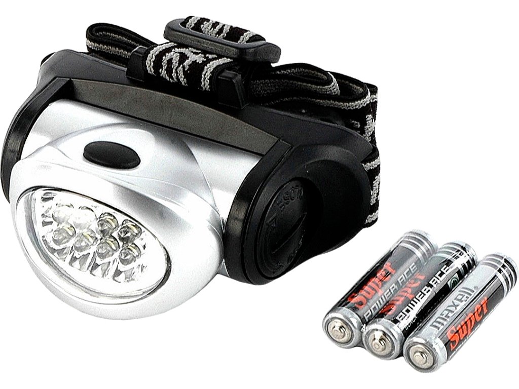 LED glavno svjetlo je nagibno (45 °) i otporno na vlagu. Prosječno trajanje baterije kada je upaljeno: 2 LED diode - 51 sat, 4 LED diode - 41 sat, 8 LED dioda - 37 sati. Napajanje: 3 1.5V AAA baterije - nisu uključene.