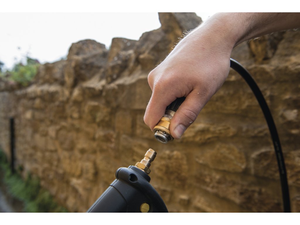 Indukcijski motor hlađen zrakom osigurava visoku pouzdanost i energetsku učinkovitost. Funkcija zaustavljanja/pokretanja za automatsko održavanje konstantnog tlaka. Funkcija samousisavanja omogućuje spajanje pročišćivača na druge izvore vode, uključujući bačve s vodom. Ugrađeni kotači i uvlačiva ručka za lakši transport. Ugrađeni držač za pištolj, kabel za napajanje i crijevo. Radni tlak: 110 bara. Maksimalni tlak: 165 bara. Maksimalna brzina protoka: 7,1 l/min. Duljina tlačnog crijeva 8 m. Duljina kabela za napajanje 10 m. Težina 18 kg. Paket uključuje fiksne i rotirajuće četke, turbo mlaznice, produžni nastavak od 2 × i brzu spojku crijeva.