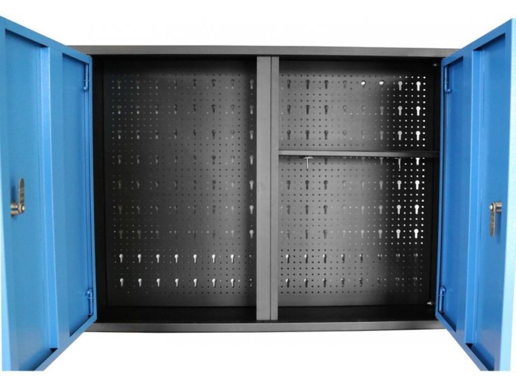 Zidna kutija s alatima, dizajnirana za uporabu u kućanskim radionicama ili radionicama održavanja, montažnim objektima itd.