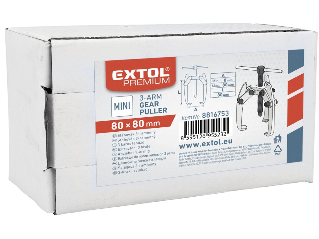 MINI izvlakač ima 3 kovane ruke s rasponom od 80 mm i dubinom od 80 mm, potporni vijak s vrhom i šipkom, što omogućuje rad bez potrebe za ključem.