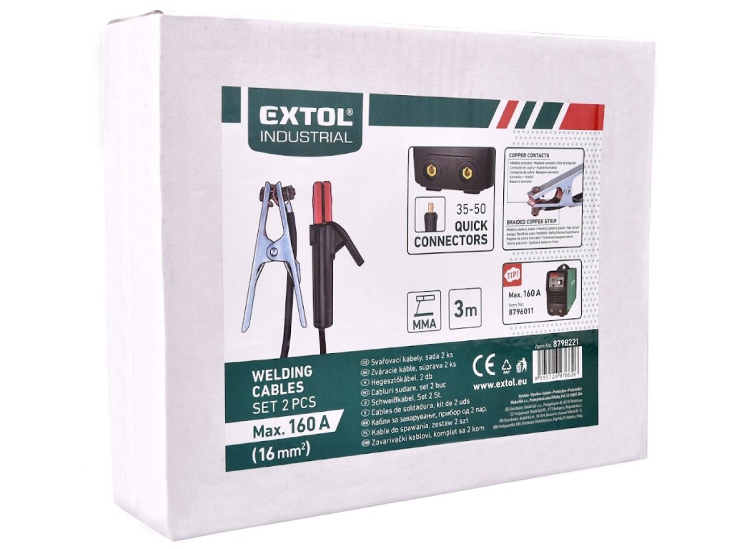 Kabeli za zavarivanje, set od 2, 16 mm2, 3 m, 35 - 50, kliješta 200A
