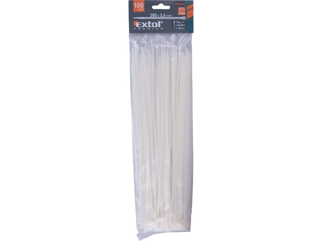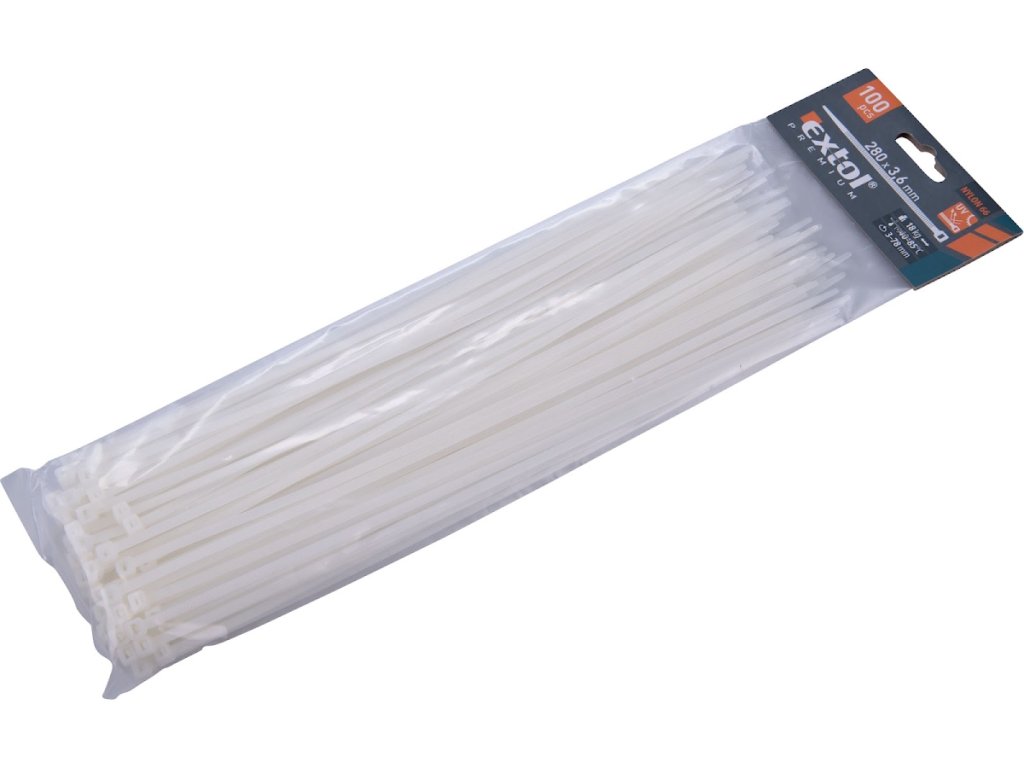 Kabelske vezice bijele, 280 × 3,6 mm, 100 kom, najlon PA66