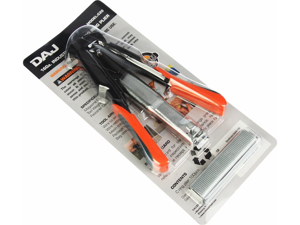 Pritiskom na čeljusti kliješta za spajanje jednom možemo čvrsto zatvoriti paket metalnom kopčom u obliku slova O veličine 7,2 mm. Spremnik kliješta ima kapacitet od 50 spajalica u obliku slova C od 20 × 10 mm.