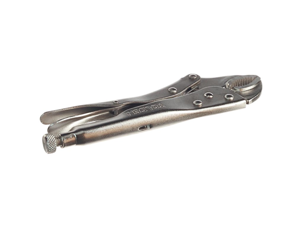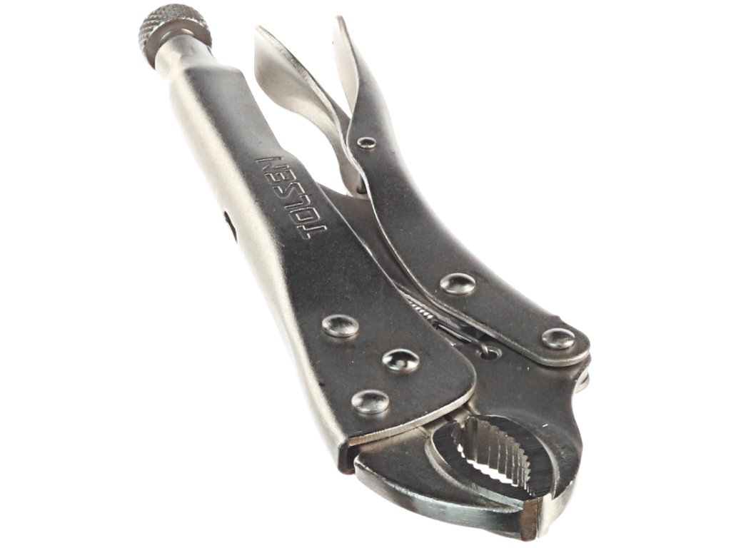 Praktična kliješta za samozaključavanje. Ukupna duljina kliješta 250 mm, maksimalno otvaranje čeljusti 50 mm. Otvor čeljusti u zaključanom položaju podesiv je od 0-30 mm.
