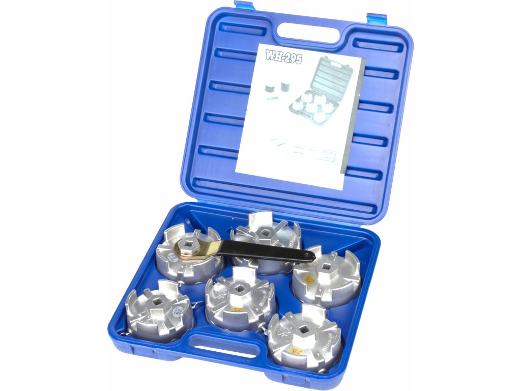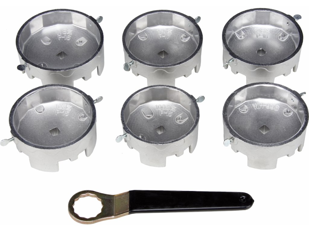 Skup ključeva za filter ulja kamiona Mazda, Toyota, Mitsubishi, Isuzu, Fuso, Hino i uobičajenih europskih marki. Komplet uključuje šest priključaka od aluminijske legure pogodnih za različite marke automobila (WH-991: promjer 100,5 mm, P-15; WH-992: promjer 106 mm, P-15; WH-993: promjer 106 mm, P-16; WH-994: promjer 108 mm, P-16; WH-995: promjer 110 mm, P-17; WH-996: promjer 118 mm, P-16). Također uključuje prstenasti ključ ø 27 mm. Ključevi su opremljeni bočnim vijcima za zaključavanje i rupama za otpuštanje.