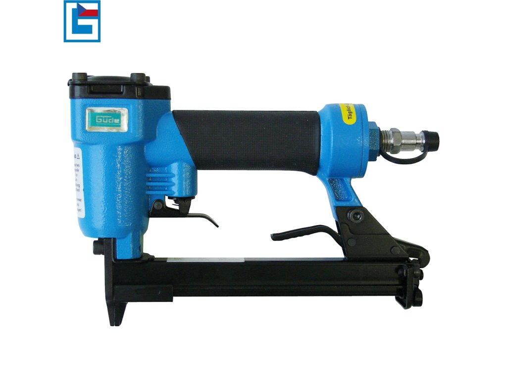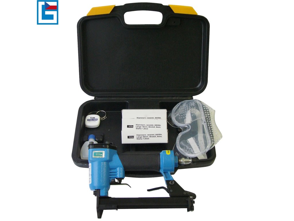 Pneumatski klamerica, dizajnirana za pričvršćivanje folija, tkanina, kože, tepiha, presvlaka, izolacijskih materijala, stražnjih dasaka za namještaj itd. pričvršćivanjem spajalica 6-14 mm.
