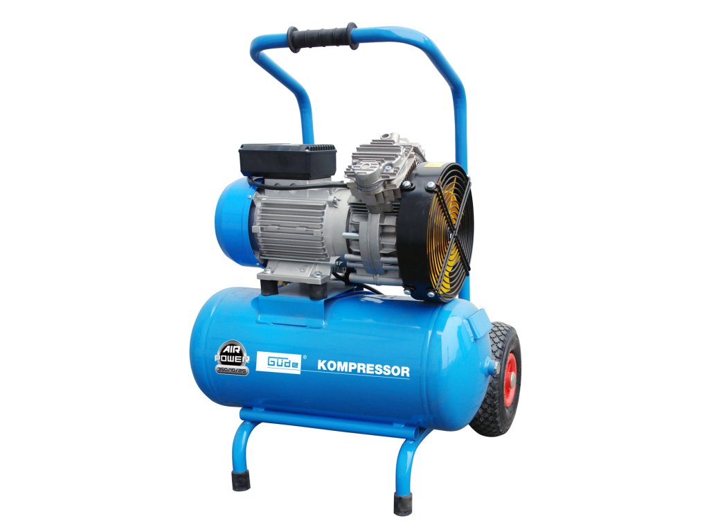 Tlačna posuda: 25 l, ventil za odvod kondenzata, potporne noge s gumenim nogama (2), putni kotači ispunjeni zrakom / transportna ručka za jednostavno rukovanje.