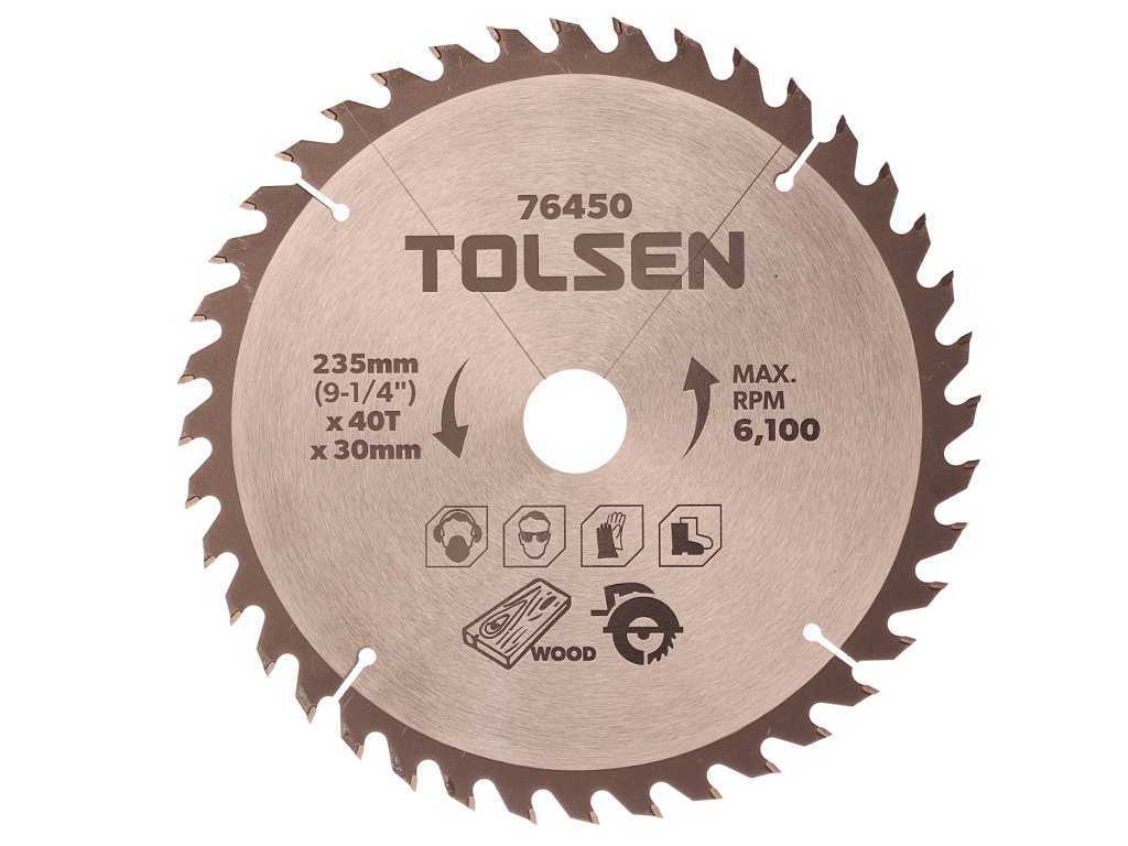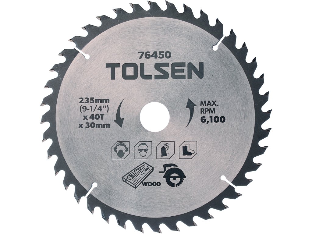 List pile opremljen TCT lopaticama (cementirani volframov karbid). Promjer diska 235 mm, veličina rupe ø30 mm, broj zuba 40, redukcija ø16,ø20,ø25,4xø30mm. Debljina noža (lim) 1,6 mm. Maksimalna brzina 6100 n/min.