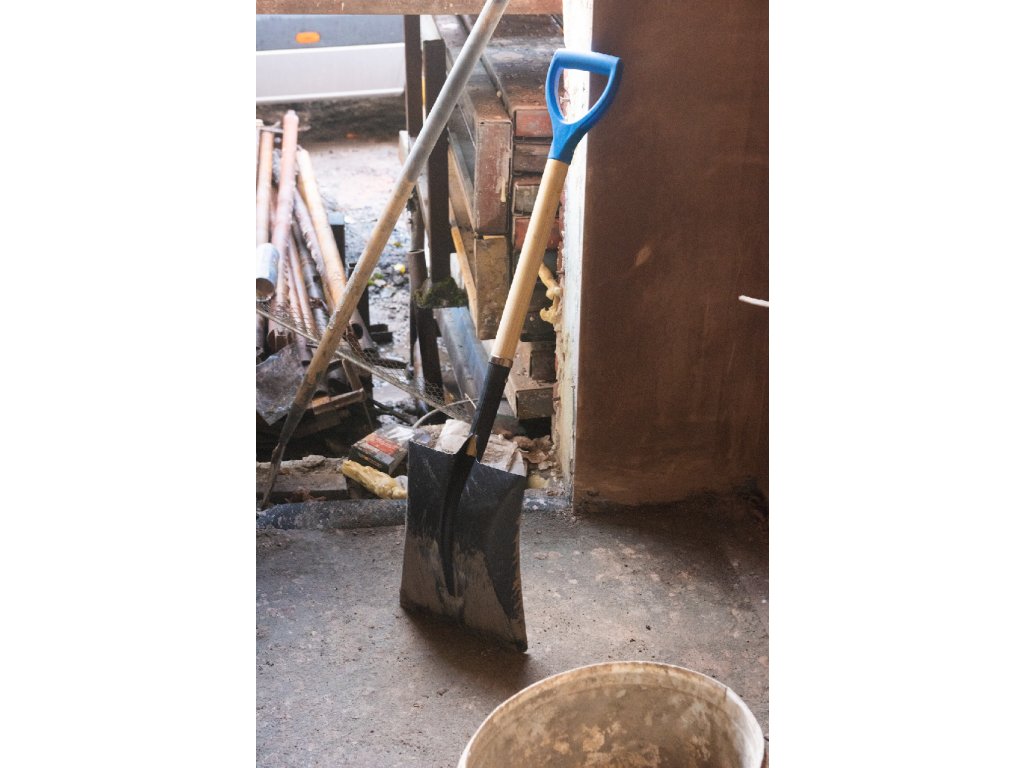 Žigosana čelična glava s površinom otpornom na koroziju, poliranom drvenom ručkom i PYD ručkom. Pogodno za lopatu, miješanje ili zatrpavanje jaraka. Oštrica D x Š: 320 x 250 mm. Težina glave 1,35 kg.