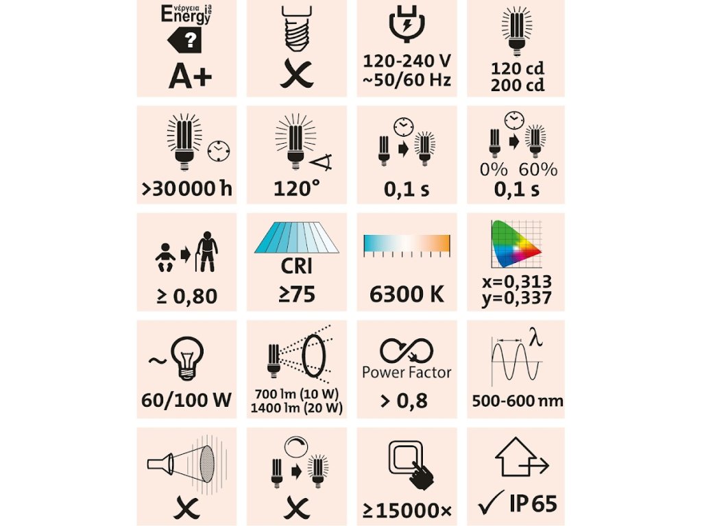 - Vrijeme osvjetljenja pri punoj snazi: 6 h (10 W) / 4 h (20 W)