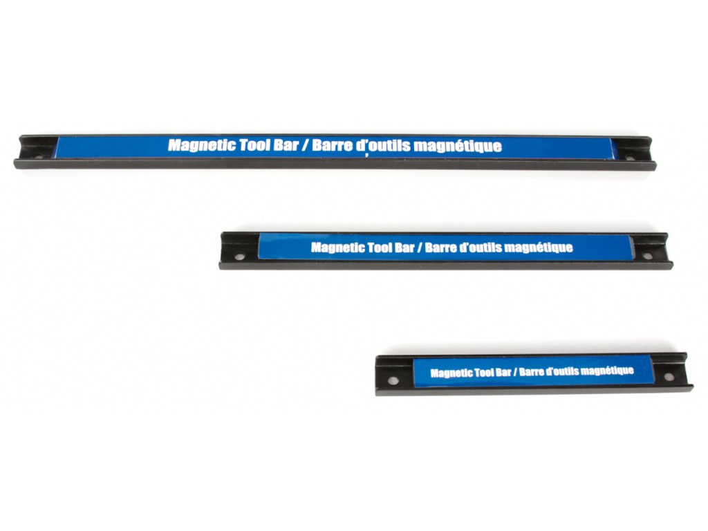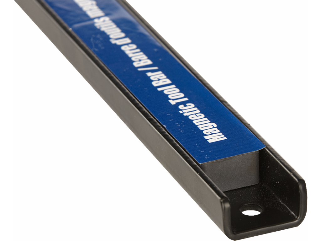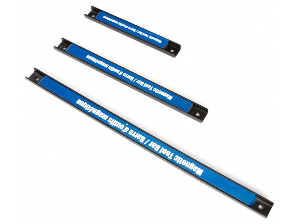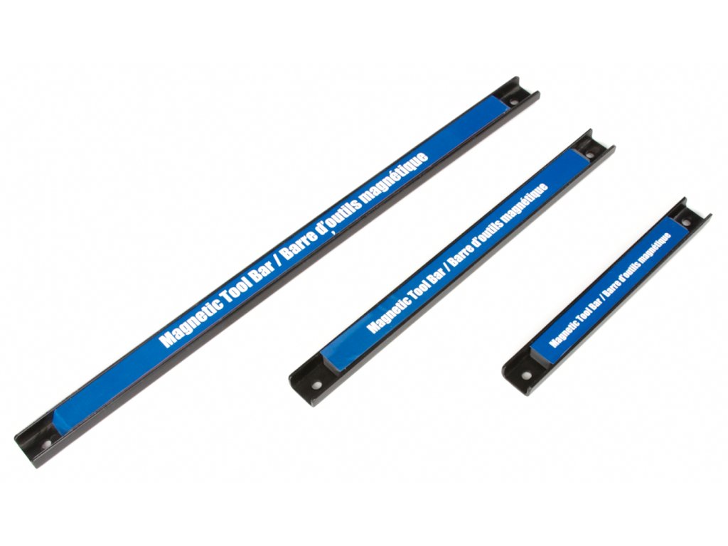 Magnetske trake s jakim magnetom za jasno i brzo skladištenje alata izrađenih od feromagnetskih materijala. Lajsne su pričvršćene na zid vijcima. Set uključuje tri komada tračnica duljine 203 mm, 305 mm i 457 mm.