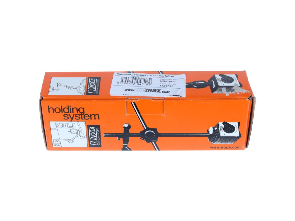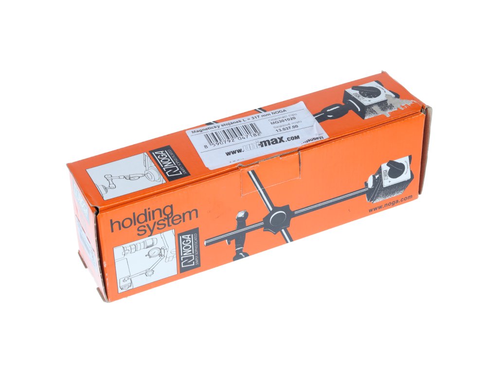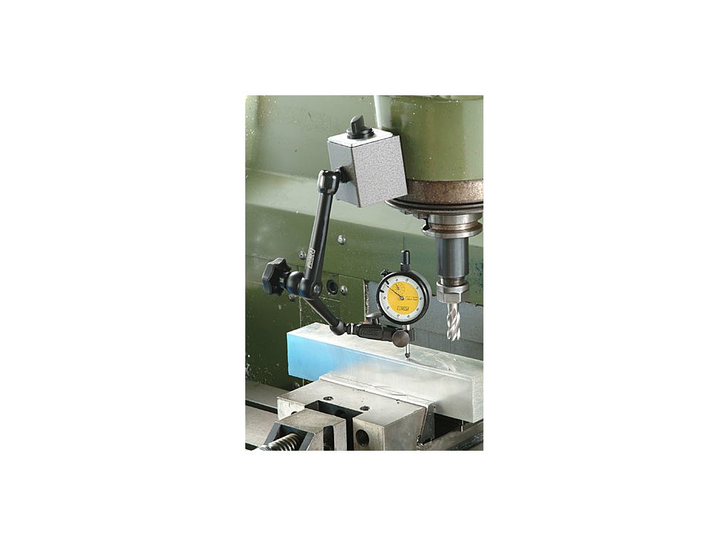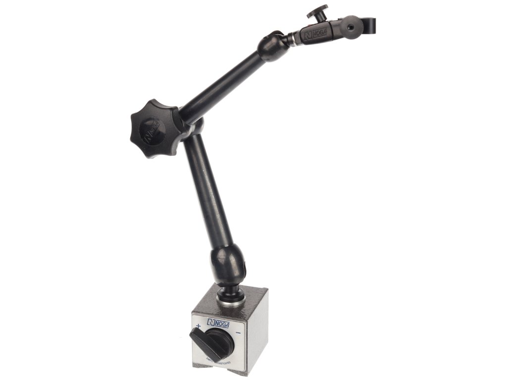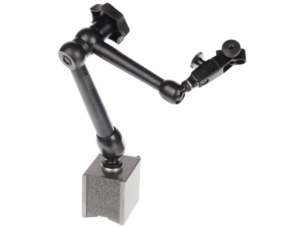Sa središnjom bravom, nježnim stezanjem, duljinom ruke + stezanjem 317 mm. Krak postolja sadrži fiksni vanjski navoj M8, koji je pričvršćen u magnetsku bazu. Baza s promjenjivim magnetom 800 N; Dimenzije 50 × 60 × 55 mm. Ruke: 133 + 113 mm; središnje zaključavanje. Stezanje: fino podešavanje, 3/8", ø 6 mm; ø 8 mm; dovetail 8 mm.