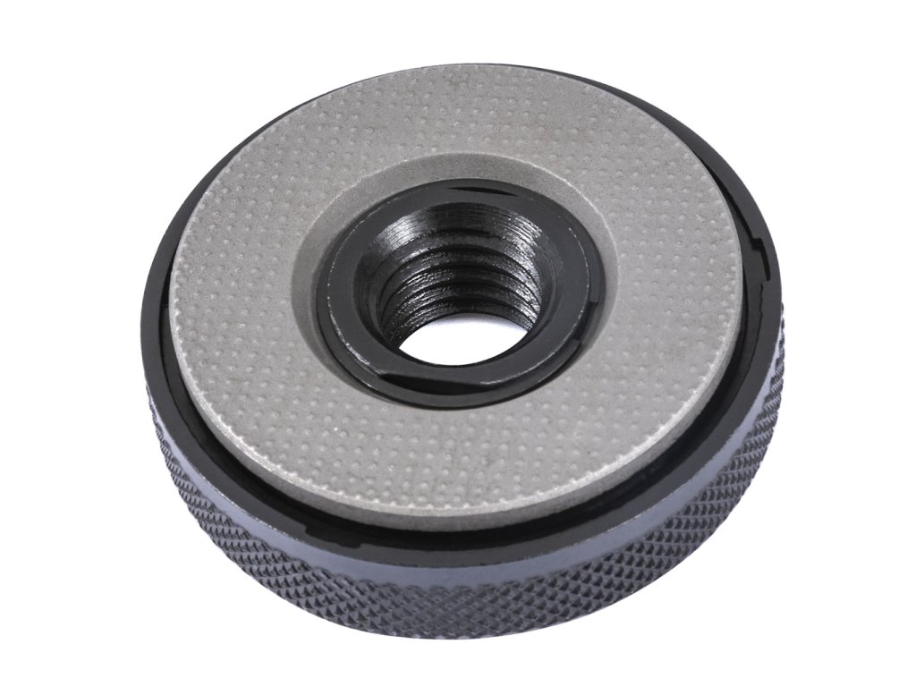 Olakšava i ubrzava sigurnu izmjenu kotača za rezanje i brušenje promjera 115 – 225 mm u kutnoj brusilici s navojem M14 na vretenu. Ključ nije potreban za zatezanje i otpuštanje, to se radi ručno. U slučaju začepljenja mogu se koristiti rupe na licu matice. Matica s brzim otpuštanjem korisna je za povećanje radne učinkovitosti i istovremeno ne dopušta prenaprezanje, a time i deformaciju alata.