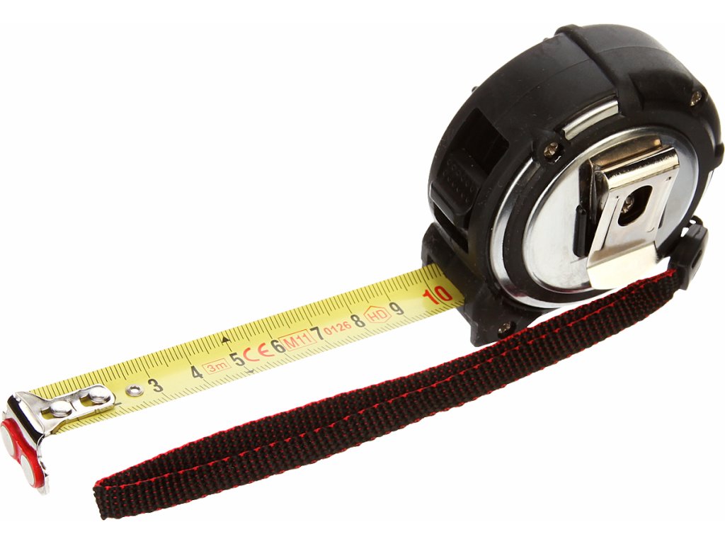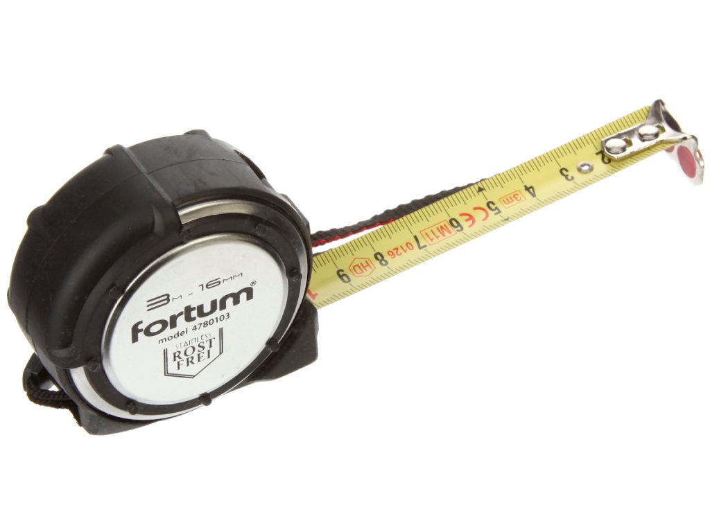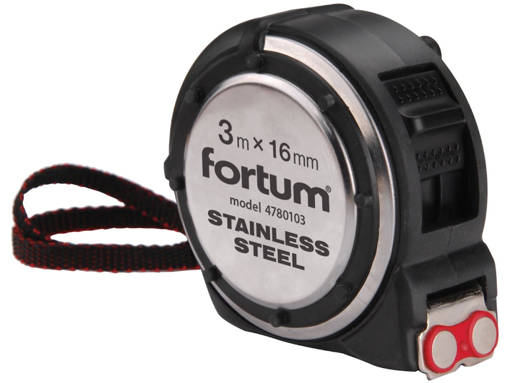 Ergonomsko tijelo od nehrđajućeg čelika, obloženo gumom, klasa točnosti II, zakrivljena traka za veću čvrstoću u produženom položaju, debljina 0,135 mm, širina 16 mm, zaštitni najlonski sloj, magnetska kuka, samonavijajući mehanizam, petlja, metalna kopča za vješanje ravnala na pojas.