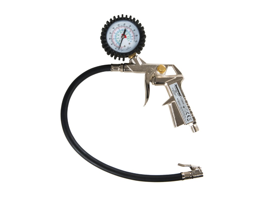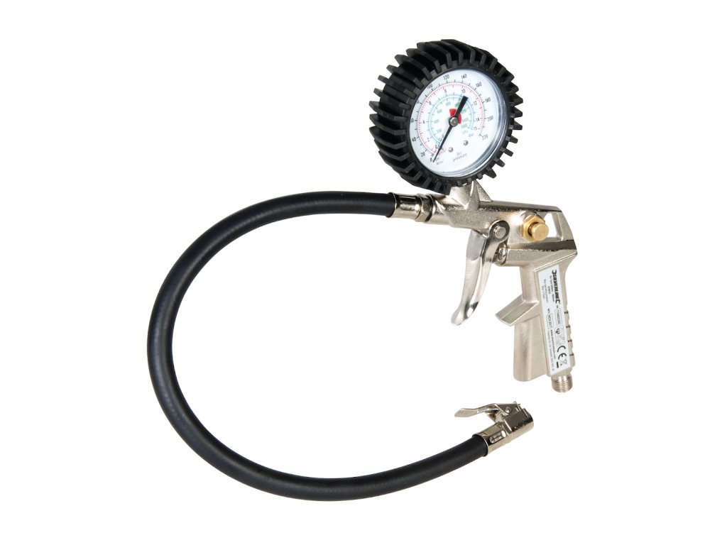 Pogodno za motorna vozila, bicikle, čamce i čamce na napuhavanje. Vage u jedinicama od 0 – 15 bara, 0 – 220 psi i 0 – 1.500 kPa. Schrader priključak ventila. Duljina crijeva 400 mm. Paket uključuje M12 / 1/4" BSP adapter i britanske i europske brze priključke.