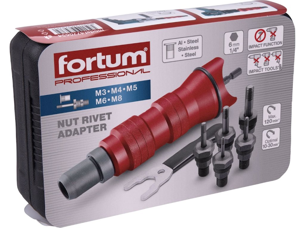 Nastavak za bušilicu za zakovice, za slijepe matice za zakovice M3 - M8, CrMoV