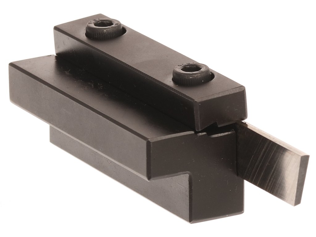 Razdjeljni sklop noža s držačem. Oštrica je pričvršćena u držač tlačnom pločom i dva Allenova vijka. Paket uključuje Allenov ključ za pričvršćivanje oštrice. Držač dizajniran za noževe za odvajanje od 12,7 mm.