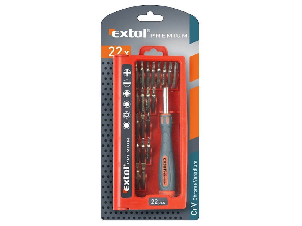 - mini-tine 5/32" : (-) 1,5 - 2 - 2,5 - 3 mm, PH 000-00-0 - 1, PZ 0 - 1, HEX 1,5 - 2 - 2,5 - 3 mm, T 6 - 7, TTa 8 - 10 - 15 - 20, priključak za vrh ručke 115 mm, pinceta