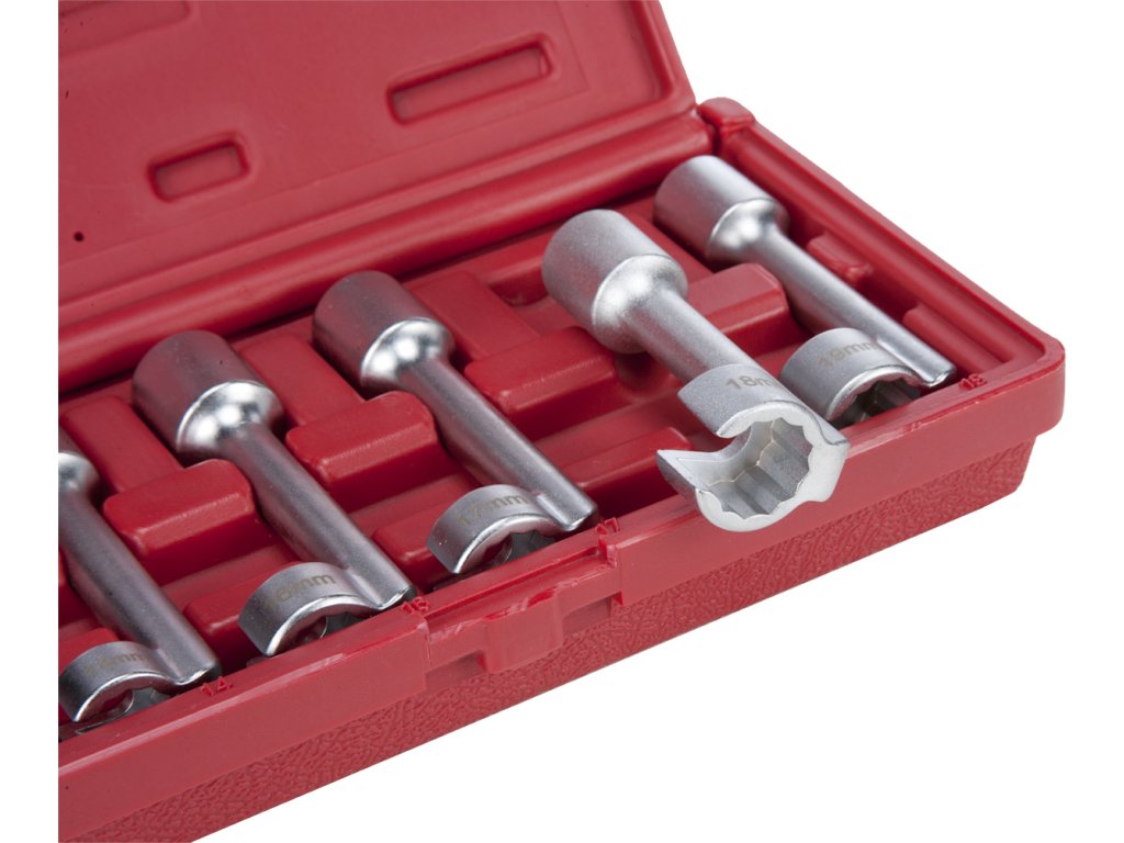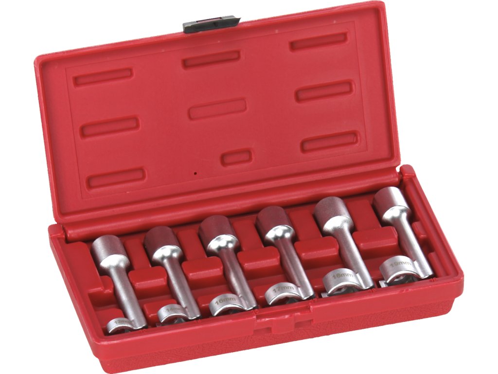 Ključevi za utičnice namijenjeni zatezanju i otpuštanju šesterokutnih vijaka i matica u skučenim prostorima, npr. spajanje ubrizgavanja goriva. Uključuje ključeve od 12, 14, 16, 17, 18, 19 mm duljine 100 mm za golu od 1/2". Pohranjeno u plastičnoj kutiji.
