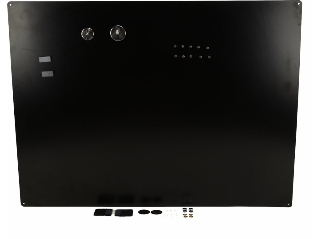 Čelična oglasna ploča s elementima magnetskog ovjesa i komplet za montažu za sidrenje. Uključuje osnovni set od 14 visećih magnetskih elemenata nosivosti 0,5 – 4 kg, ovisno o prirodi elementa. Dimenzije oglasne ploče su 900 × 1.200 mm.