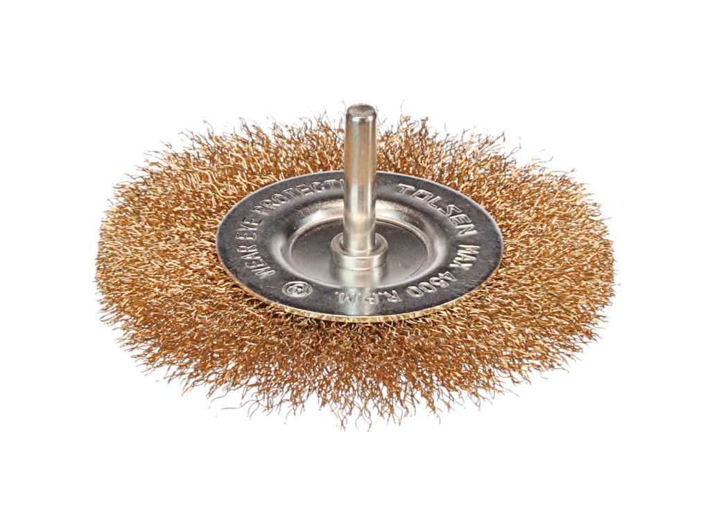 Idealno za uklanjanje hrđe i boje s metalnih površina. Promjer žice: 0,3 mm, duljina žice 22 mm, promjer četke 100 mm, promjer tijela 56 mm, promjer koljenice 6,35 mm.