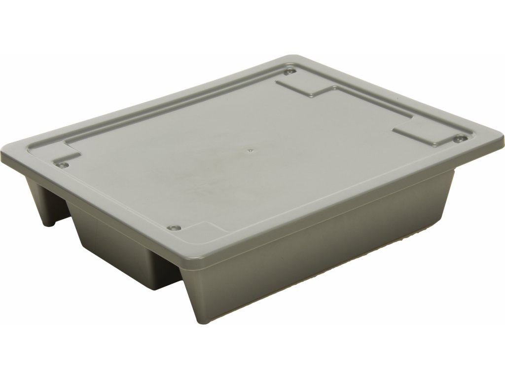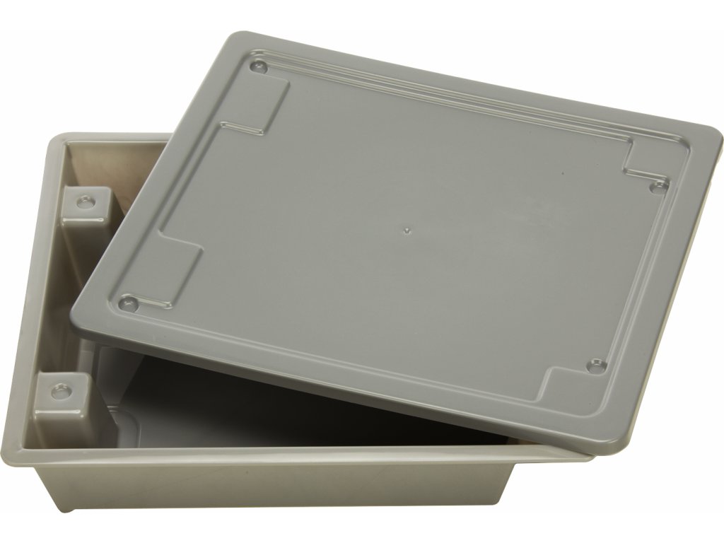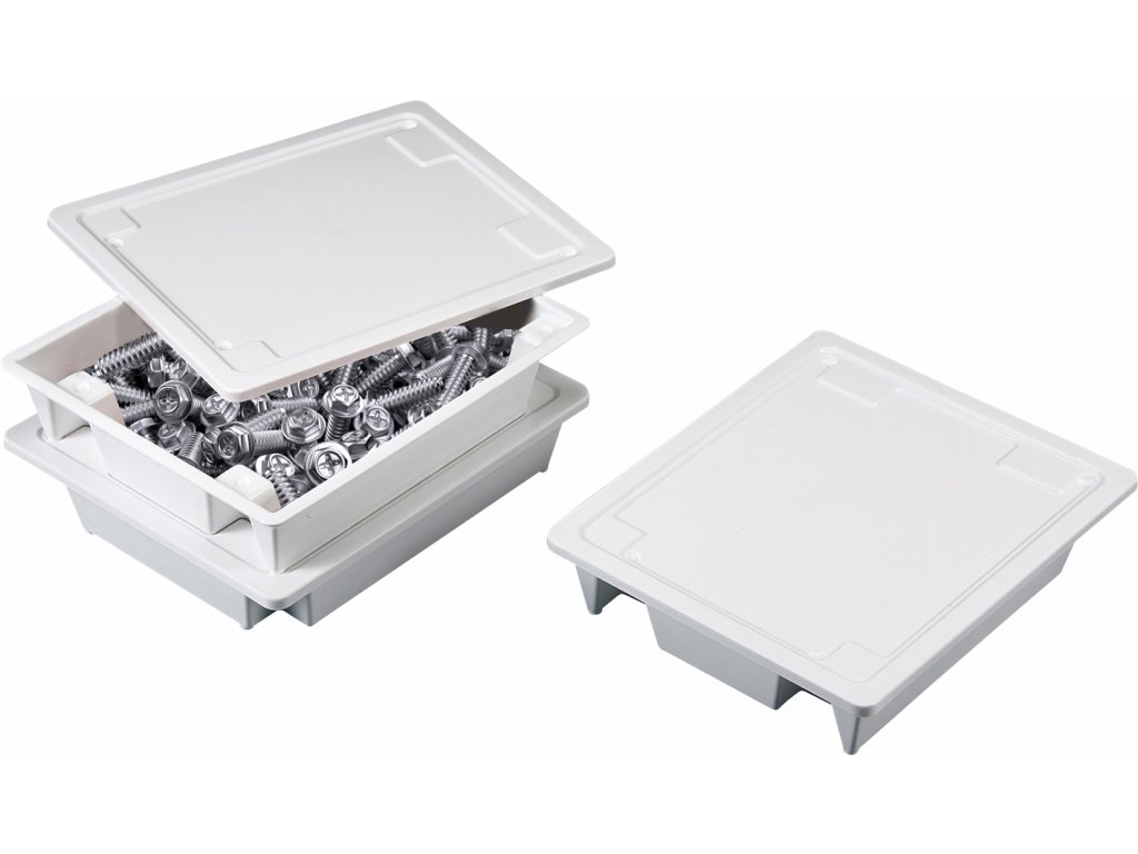 Patentirani dizajn kutija za pohranu izrađenih od kaljene plastike omogućuje im da se slažu i tako kompaktno pohranjuju u vašoj radionici. Lako se čisti, otpornost na temperaturu -20 °C – 100 °C, dimenzije 388 × 327 × 85 mm.