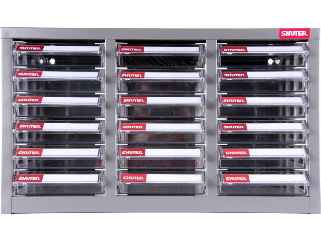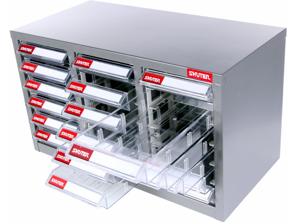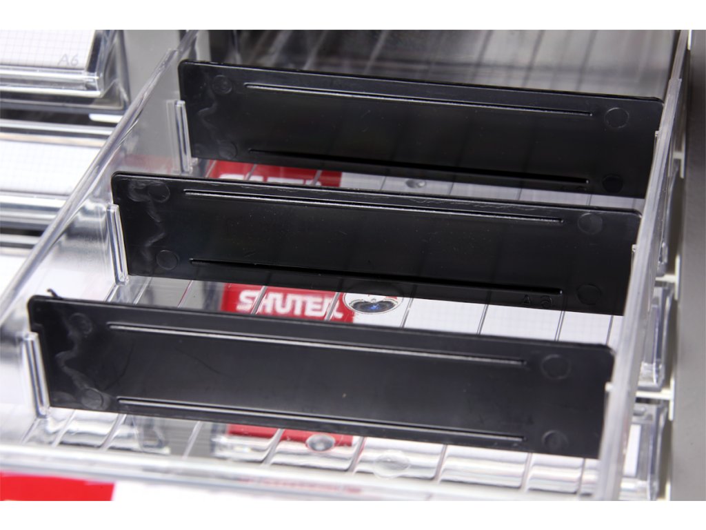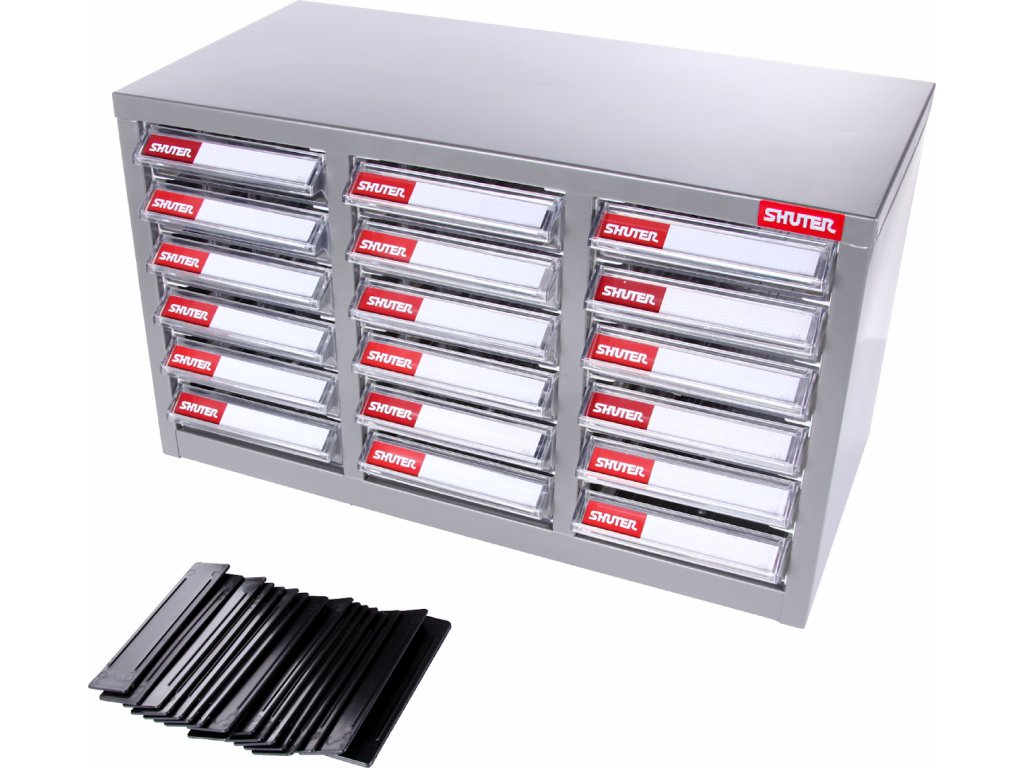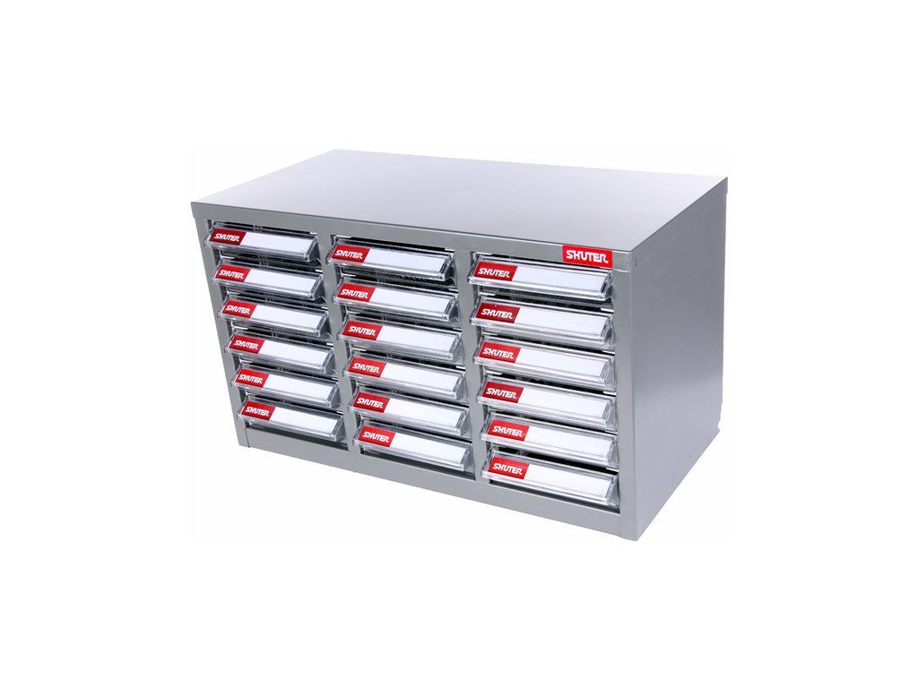 Nosivi čelični okvir izrađen od profila 0,7 mm, pocinčan i lakiran, sadrži ukupno 18 plastičnih ladica s ručkama za jednostavno izvlačenje. Dimenzije 533 × 265 × 310 mm. Nosivost po ladici 6 kg.