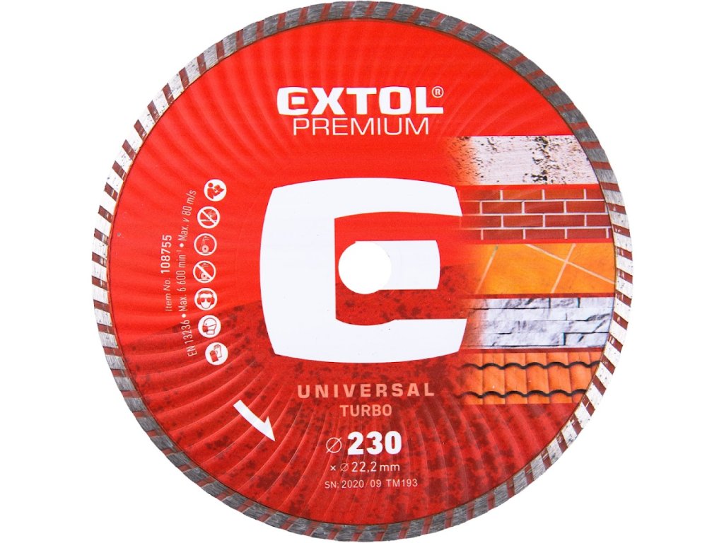 Oštrica za rezanje dijamanata, turbo - suho i mokro rezanje, 230 × 22,2 × 2,8 mm